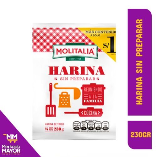 MOLITALIA, HARINA SIN PREPARAR X 230GR X 18UND
